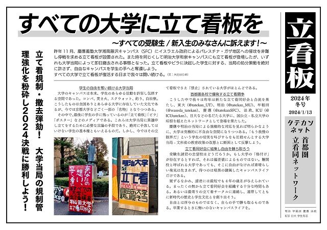 虐殺によって引き起こされた状況を、単に自派の危機としてしか見ることができず、自治会私物化=延命のための自己防衛に狂奔する革マル。また管理支配体制の動揺を、自治会処分、機動隊導人(1・7告示)etc、で歯止めせんとすることに汲々とする当局。彼らはこの「事件」を姑息に乗り切ることをしか考えることができない。唯一我々だけが革マルの暴力装置、当局の『仮構の秩序』政策の敵対に抗し、11・8川口君虐殺事件の木質的解決―早大管理支配体制の打破の斗いを担い得るし、また担っているのである。